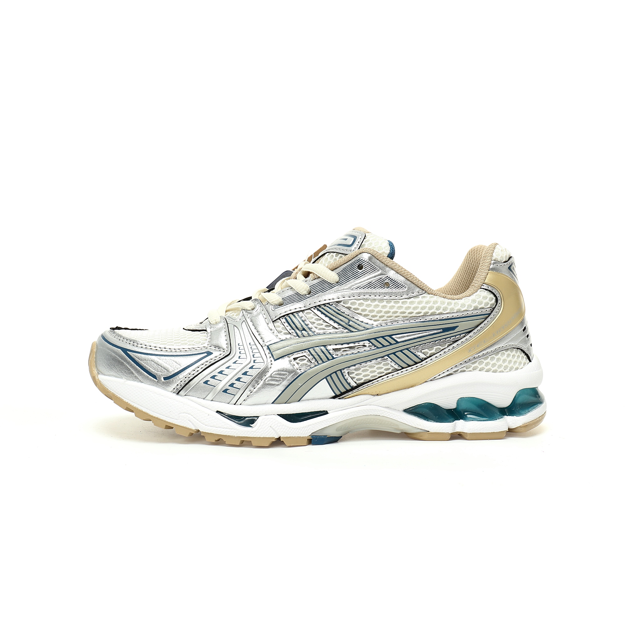 The ASICS GEL-KAYANO 14 was released to much anticipation in 2008 by designer Hidenori Yamashita, who used the word "Flash" as inspiration to create a futuristic metallic upper that revamp the interior and upgrade its performance from the inside out. For the GEL-KAYANO family heritage and the continuation of the classic running shoe culture, a milestone work. The ASICS GEL-KAYANO 14 shoe reinterprets the retro running shape and is resurfacing with its late 2000s aesthetic, with a silver and blue upper that is extremely upscale. The mesh surface is laid out with many details of the upper and the toe to add air permeability. The ASICS GEL-KAYano 14 adds GEL cushioning glue to the midsole of the heel and the multi-density wear-resistant sole to provide high impact resistance, cushioning, and protection of the foot from the impact of the ground.