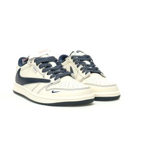 Supreme x Travis Scott x Nike Air Jordan 1 Low OG SP "Supreme" AJ1 Jordan generation classic low top cultural versatile casual sports basketball shoes "TS co branded beige navy blue Supreme logo inverted hook" DH0223-355