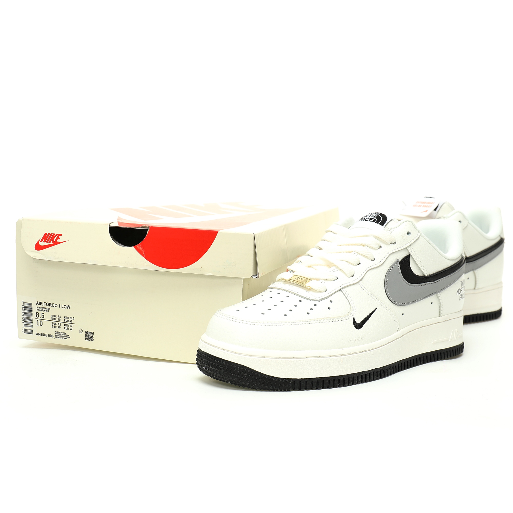 The North Face x Nike Air Force 1’07 Low "TNF" Air Force One Classic Low cut Versatile Casual Sports Board Shoes "Co branded White and Black Ash Double Hook North Logo" AM1588-006
