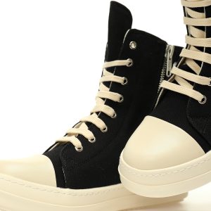 DESIGNERS Rick Owens DRKSHDW EDFU Canvas High Sneakers”Black/Milk” Luxury shoes