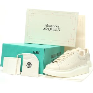 Alexander McQueen Oversized Sneakers Low cut Fashion Thick soled Casual Sports White Board Shoes "Leather Ivory Rice White Elephant Pattern" 808173WHABE419242