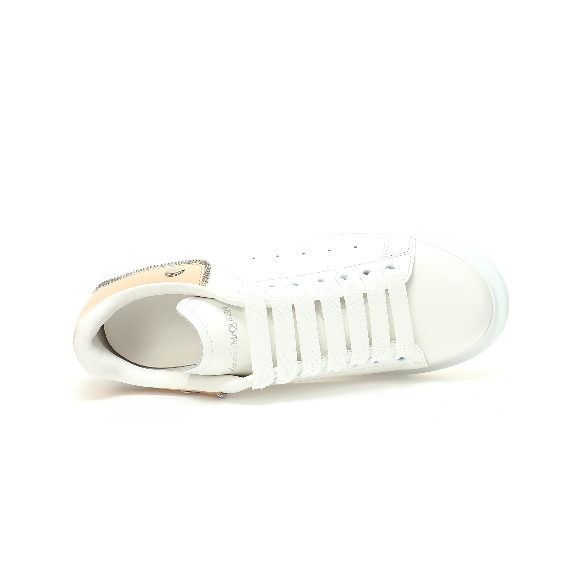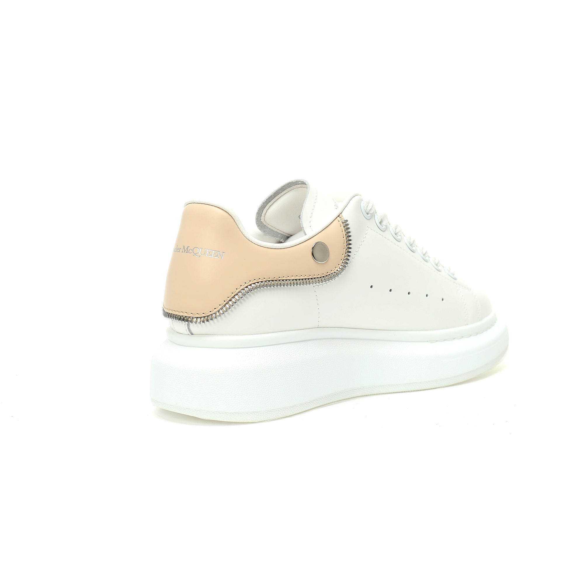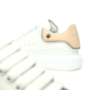 Alexander McQueen Oversized Sneakers Low Top Fashion Thick Bottom Casual Sports Little White Board Shoes "Leather White Apricot Zipper" 769116WIEE18780