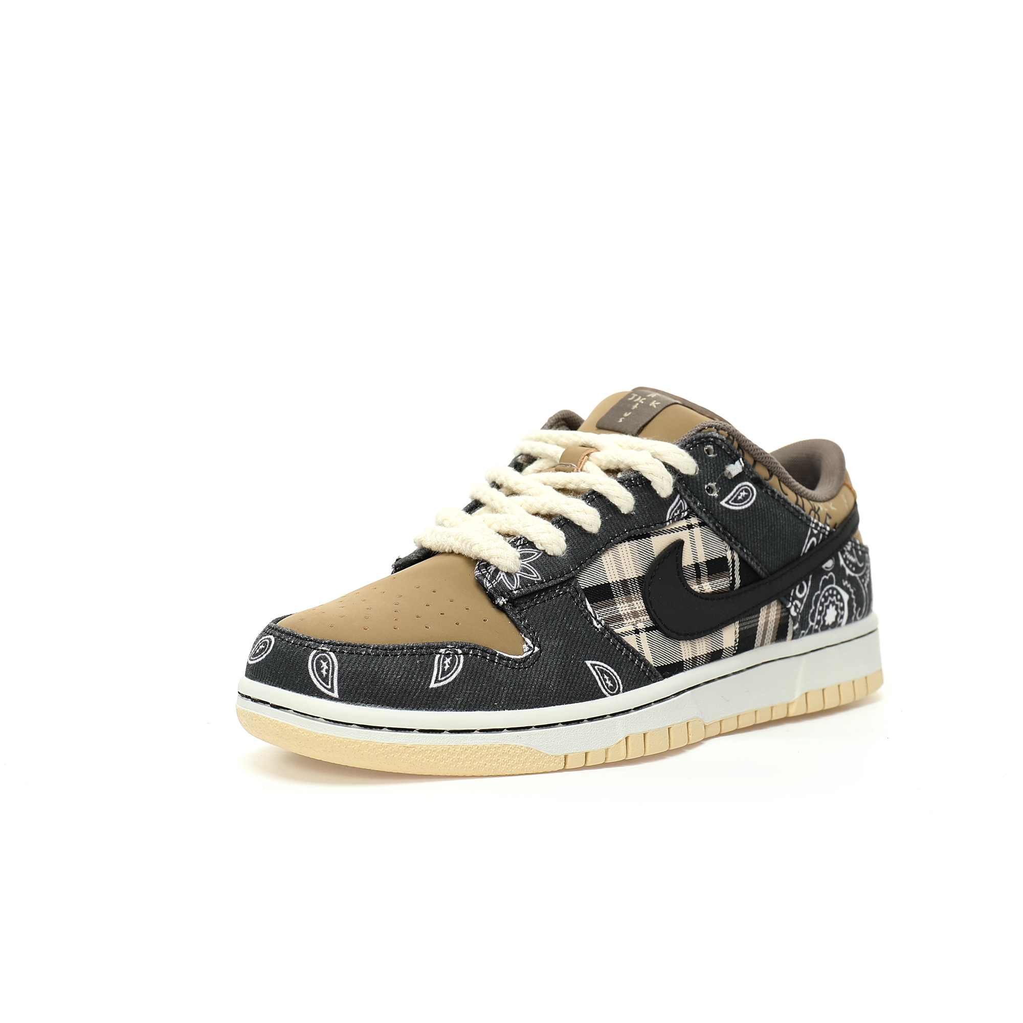The popularity of the steadily rising Nike SB Dunk family ushered in a heavy joint name with Travis Scott, the global popularity of Travis Scott x Nike SB Dunk Low is the most talked about new products in the recent sneaker circle. The new co-branded Travis Scott x Nike Dunk SB continues the tradition of high specification design. The light khaki and brown, plaid body are still Travis Scott's favorite color scheme.