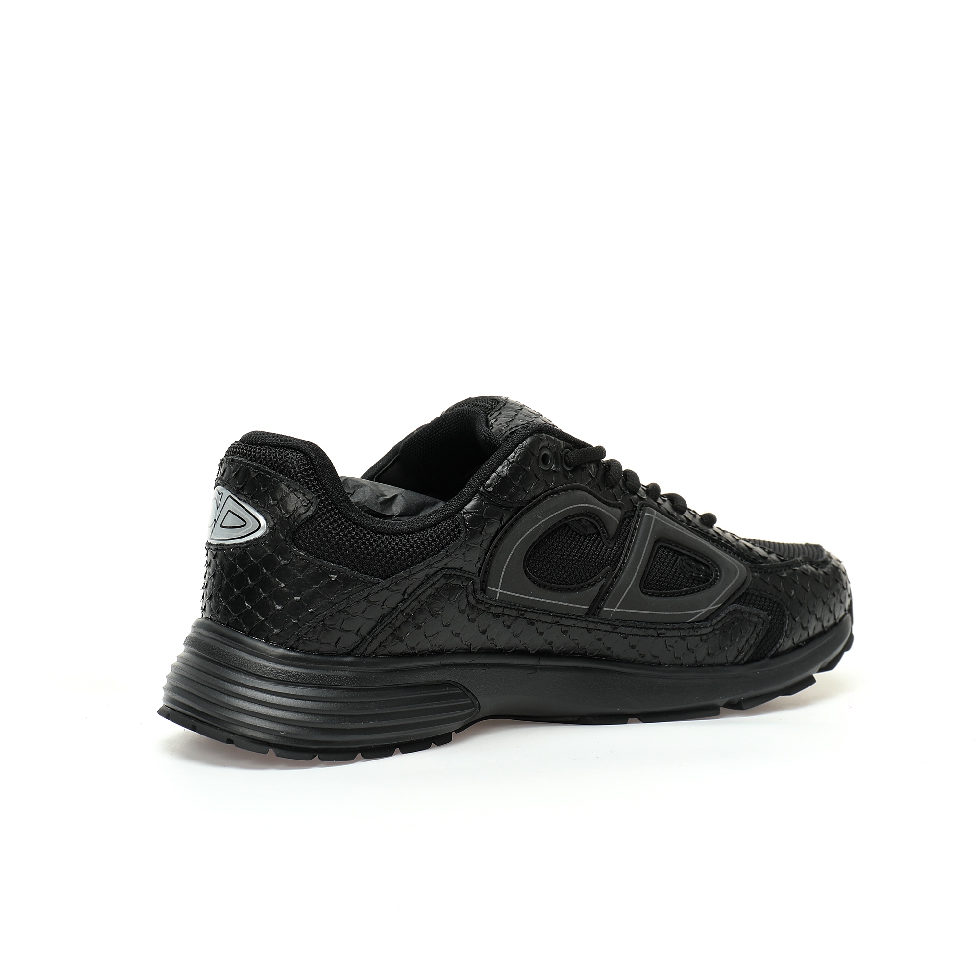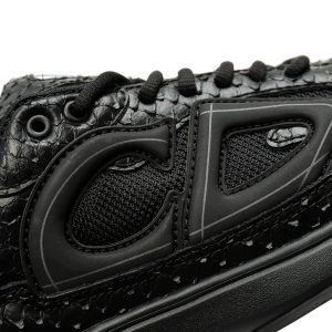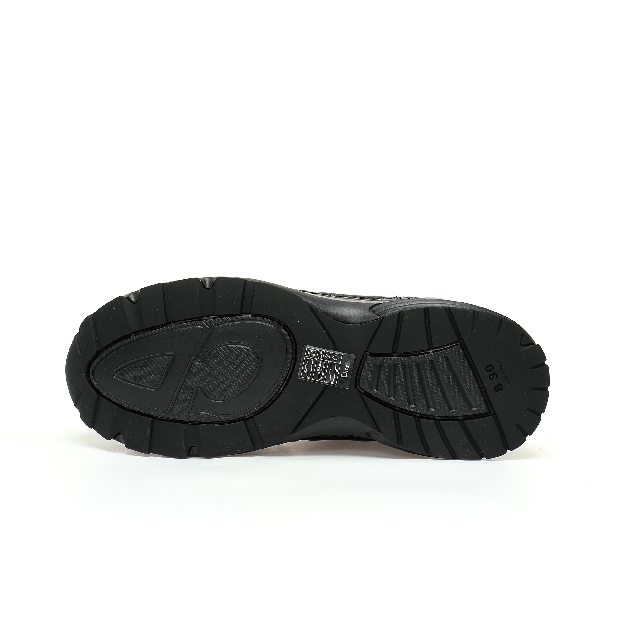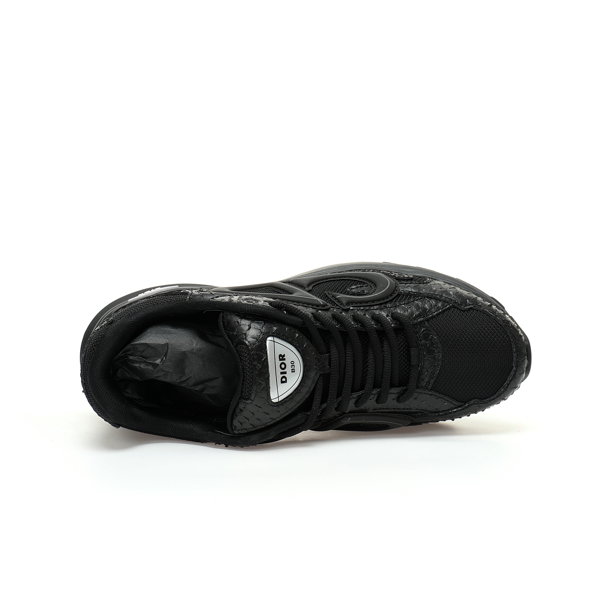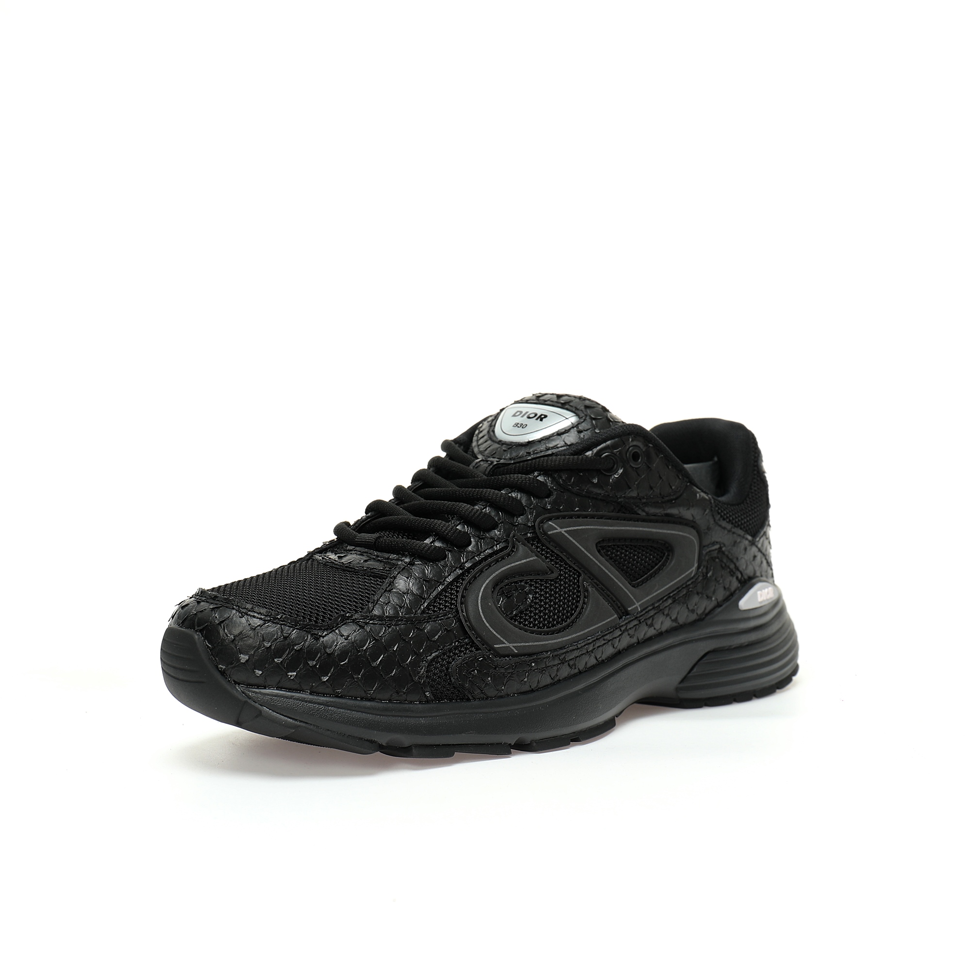 This B30 sports shoe is a unique and classic new product, fashionable and full of athletic style. Crafted with black mesh fabric and technological materials, the shoe upper is made of a combination of snake patterned cowhide leather and mesh fabric. The correct sweat absorbing mesh fabric is attached to the sea glass CD embossed insole. The exclusive development of TPU elastic midsole combined with TR glossy durable serrated rubber outsole. Adorned with the reflective same tone "CD30" logo to enhance the style and create a sense of beauty. The tongue and back of the shoe are adorned with silver toned "DIOR B30" and "CD30" logos. The lightweight carved rubber outsole highlights numerous distinctive details, while the elastic interior creates an ideal comfortable effect. Can be paired with various casual items to create exquisite styles.