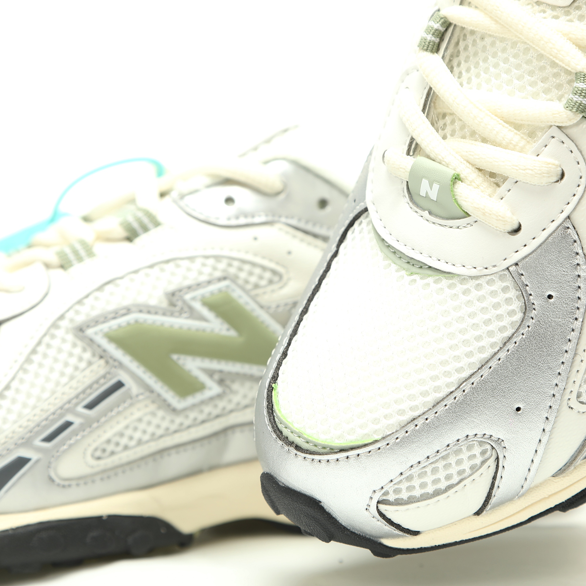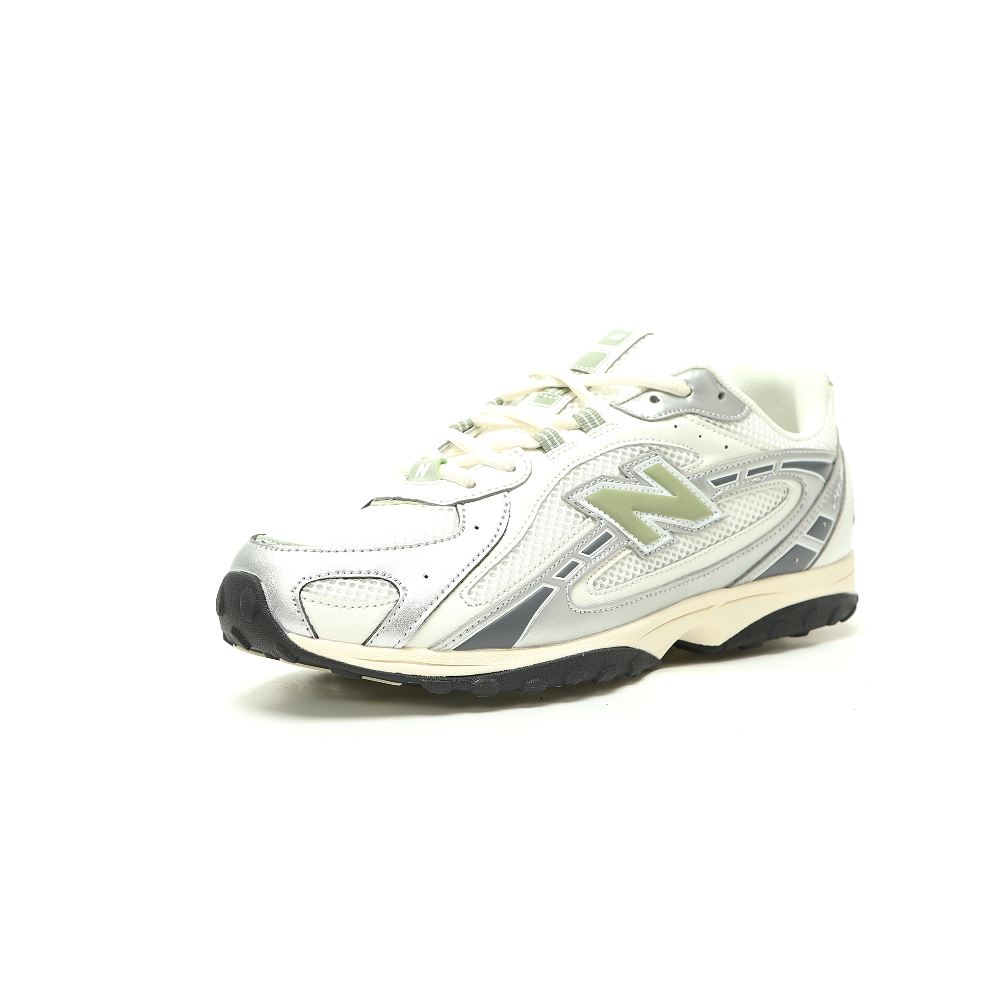 ​​【SILVER, WHITE & GREEN COLORWAY】:​​ Features a dynamic and versatile color block design. The metallic silver panels combined with clean white and a hint of green offer a unique, fashion-forward sneaker that complements your personal style.