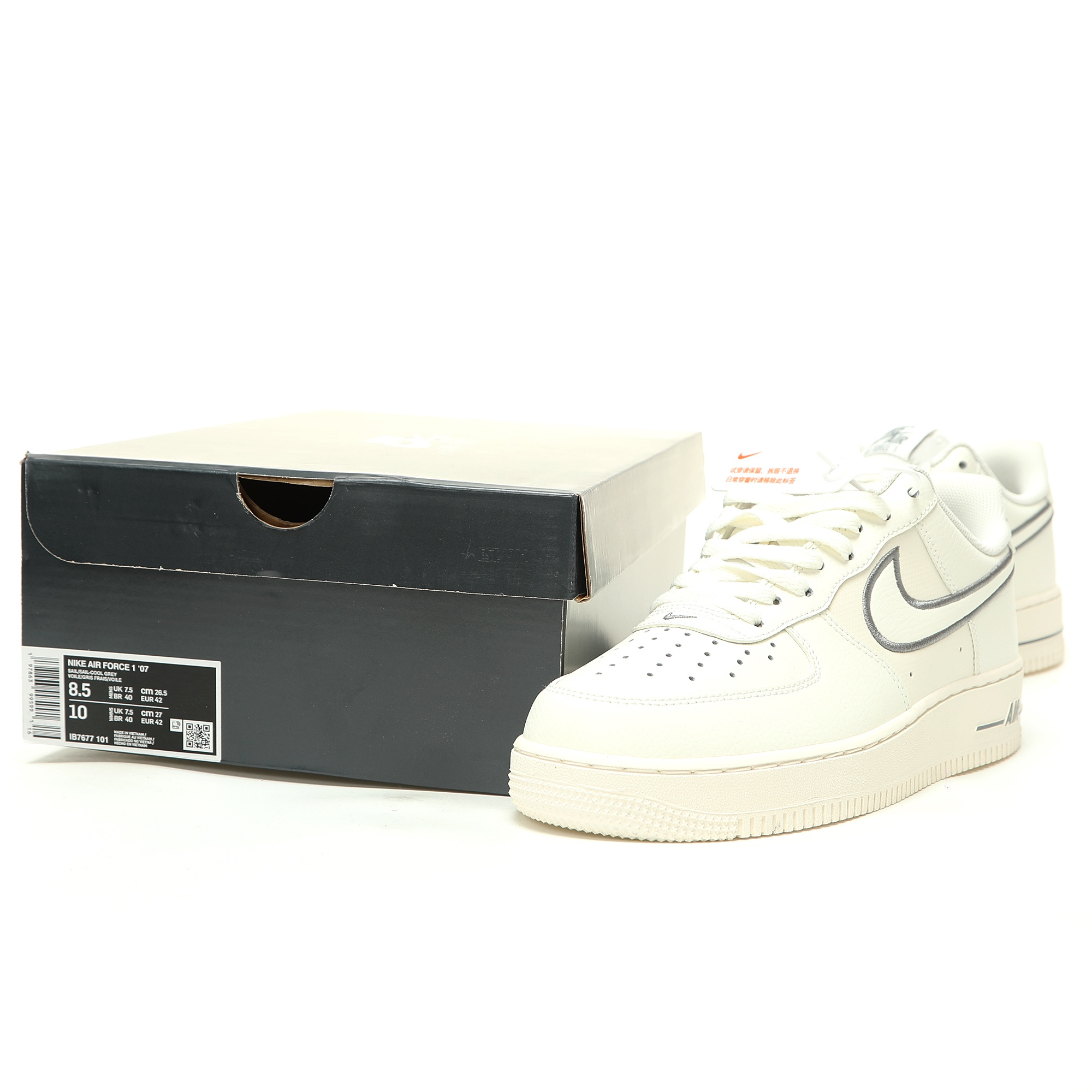 Nike Air Force 1’07 Low Leather White Grey" blends timeless Air Force 1 style with modern comfort. These classic low-top sneakers feature a premium leather upper in a sleek white and grey colorway, designed for both men and women. The durable leather construction ensures long-lasting wear, while the low-profile design offers a sleek, versatile look for daily wear, street fashion, or casual outings