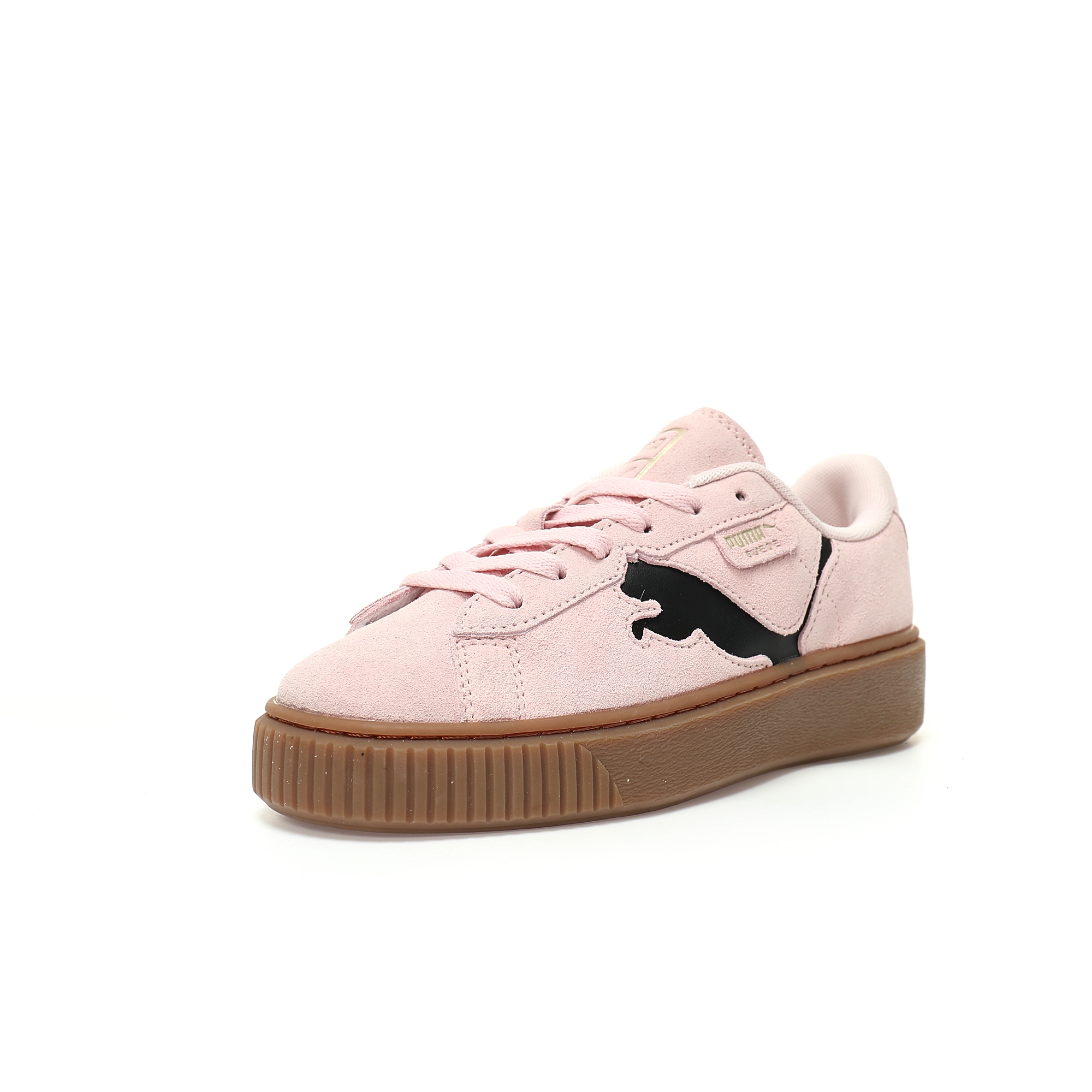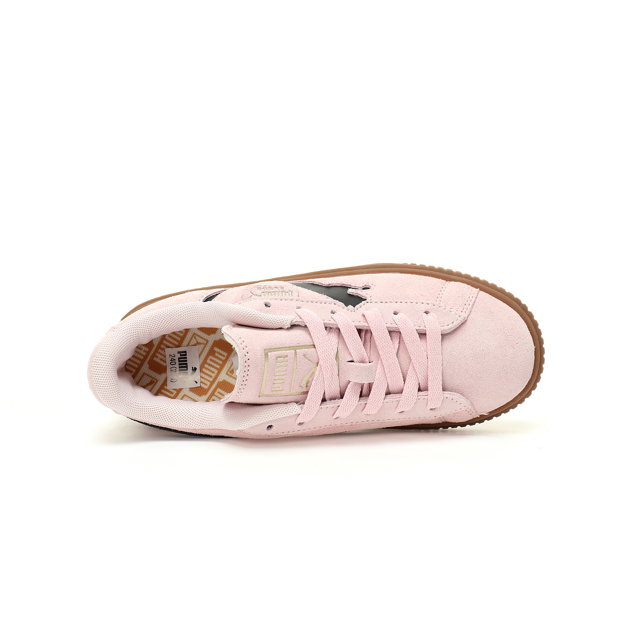 Puma Basket Platform L series low top muffin thick soles all casual height-raising board shoes "feathering light powder black rubber sole" 397233 05