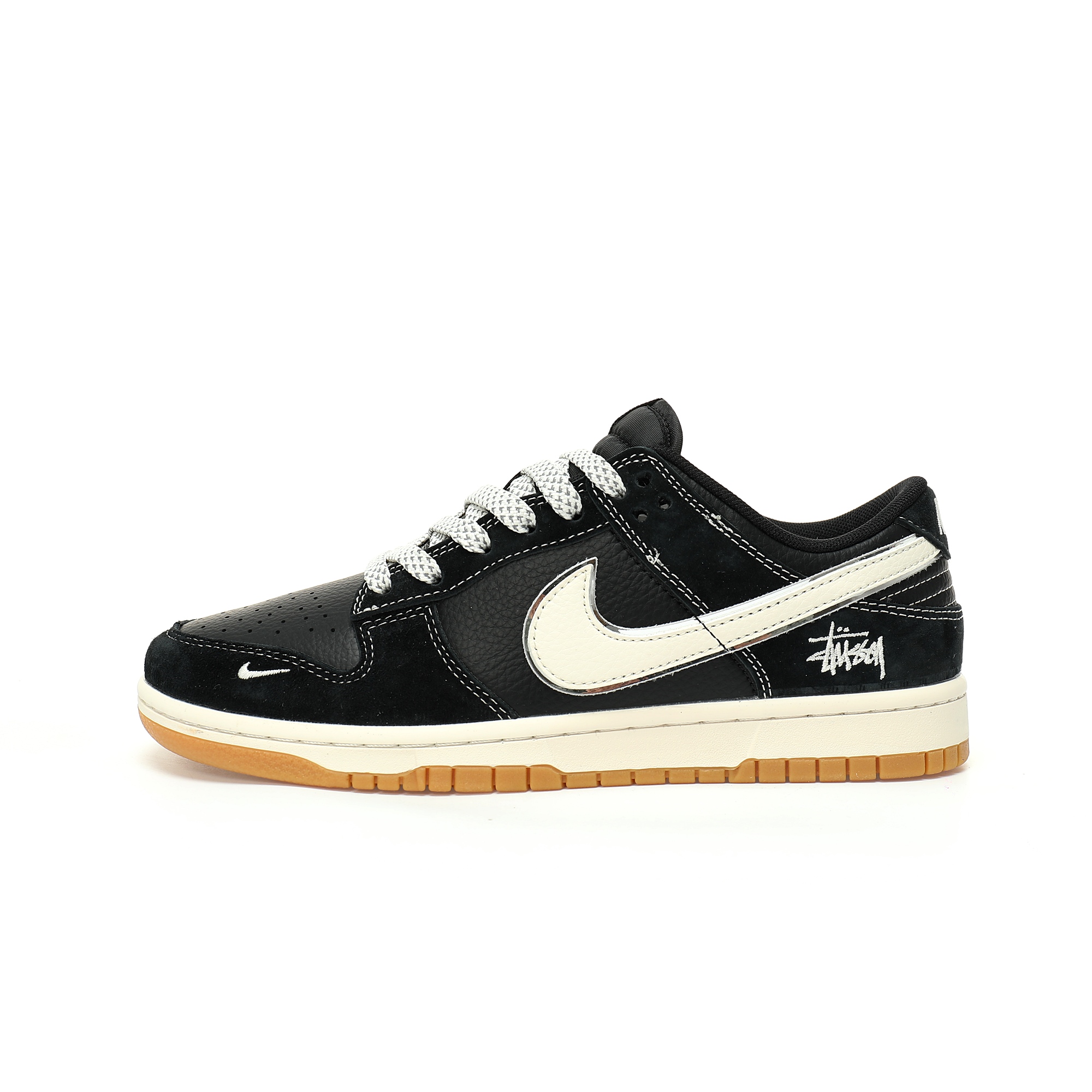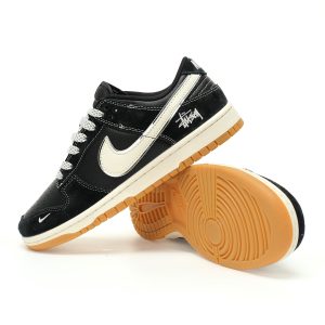Stussy x Nike By You SB Dunk Low Retro SP series leisure sports skateboard shoes "co-branded black beige Stusi Embroidery raw rubber sole" XX3168-115